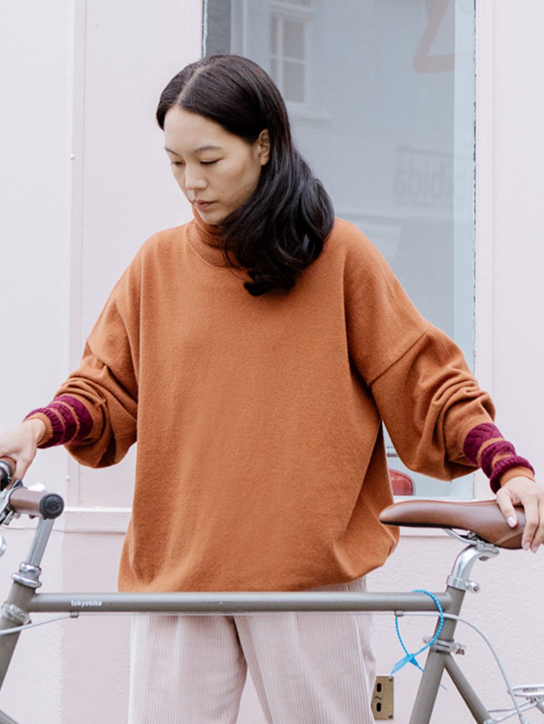 Dropped shoulder turtleneck sweater, one size fits all, 100% cashmere, made-to-order in England